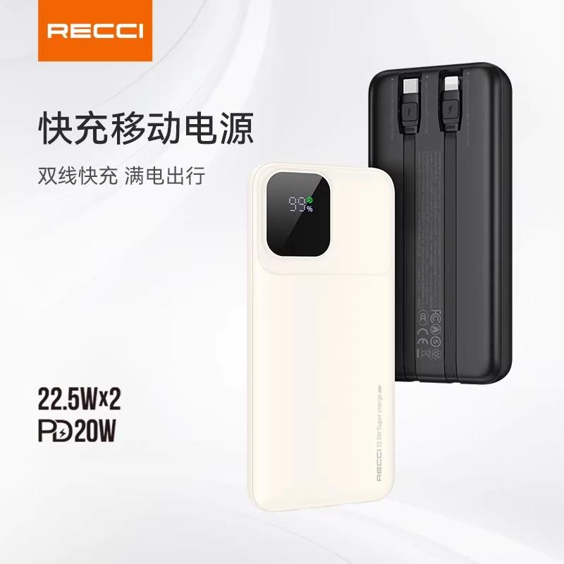 3C认证充电宝可上飞机】Recci带线新款移动电源20000毫安容量自带线双向快充便携适大容量便携充电宝 黑10000毫安